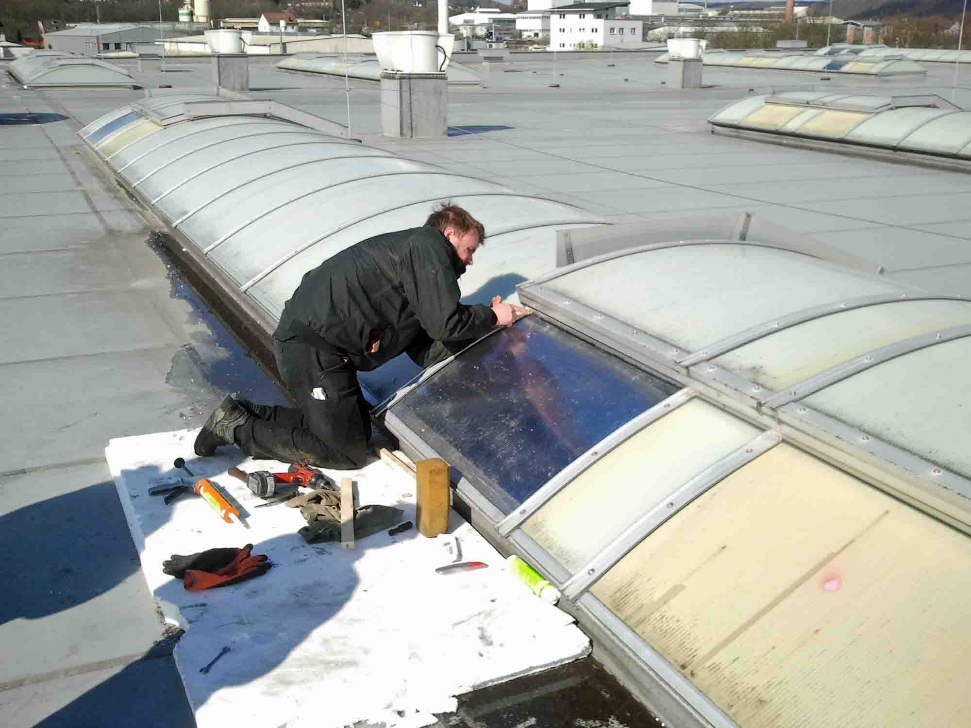 Austausch defekter Doppelstegplatten (Polycarbonat) in Lichtband